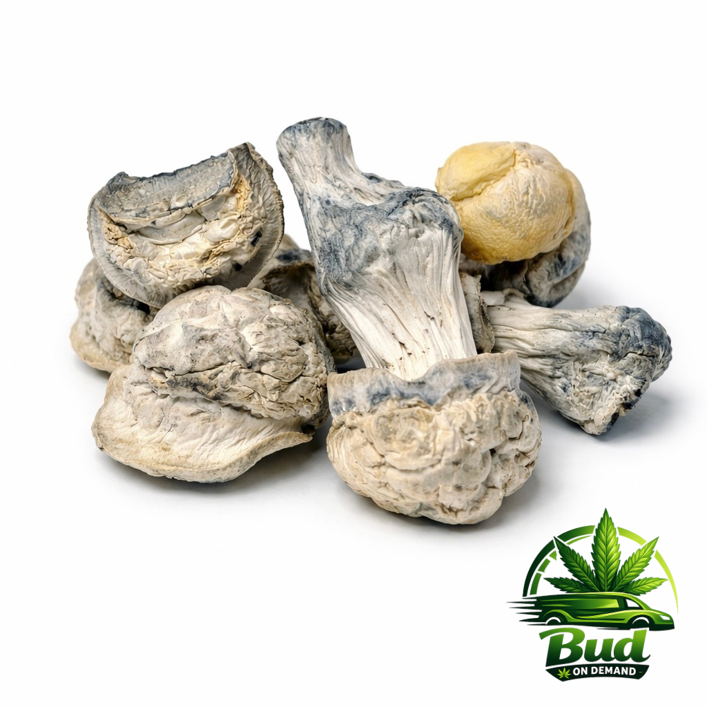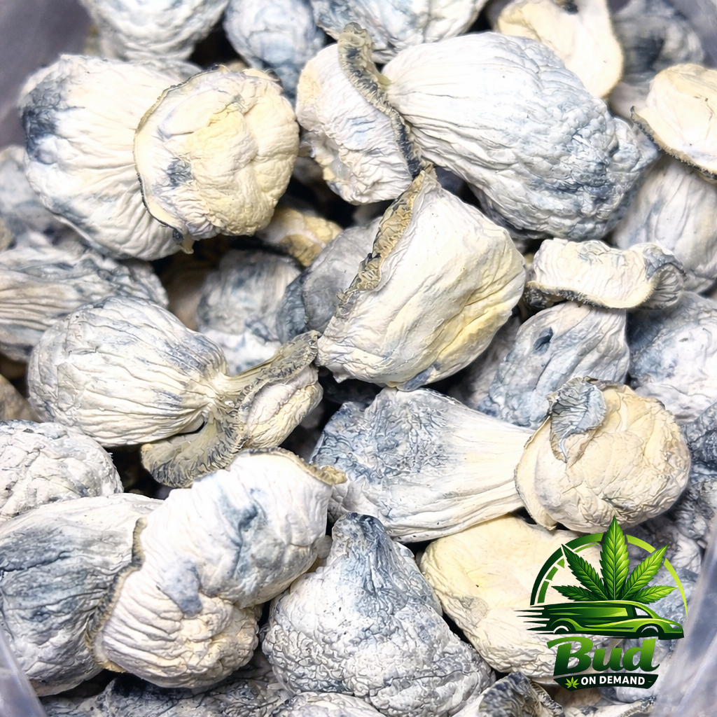 Appearance: Unique and unmistakable, featuring small, bowling pin-shaped stems and caps that exhibit distinctive blue bruising, a clear sign of their potent psilocybin content.