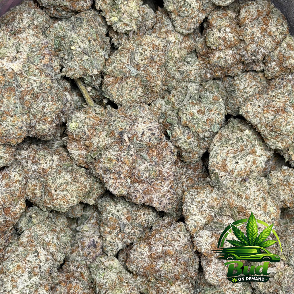 Appearance: Dense, cone-shaped forest green nugs accented by furry amber hairs and occasional purple hues. The flower is typically finished with a heavy, resinous coating of crystalline trichomes.