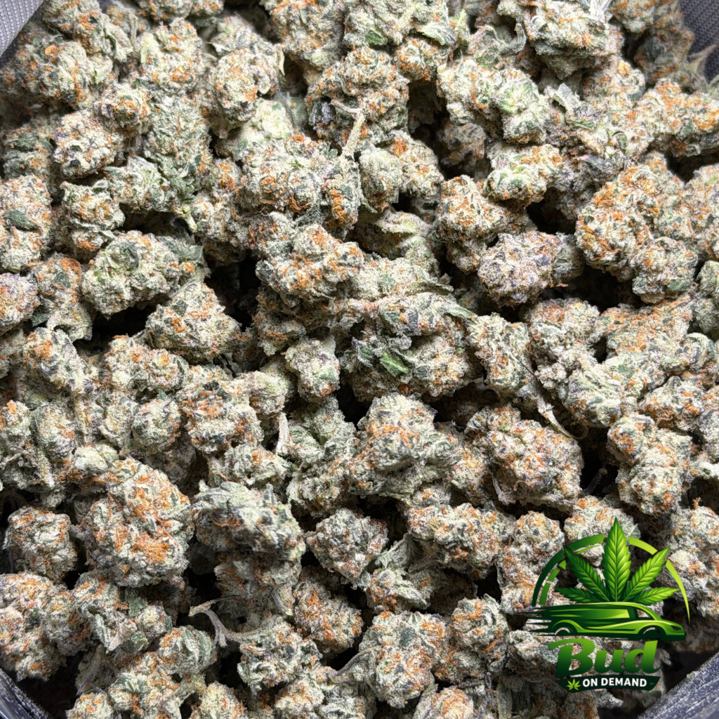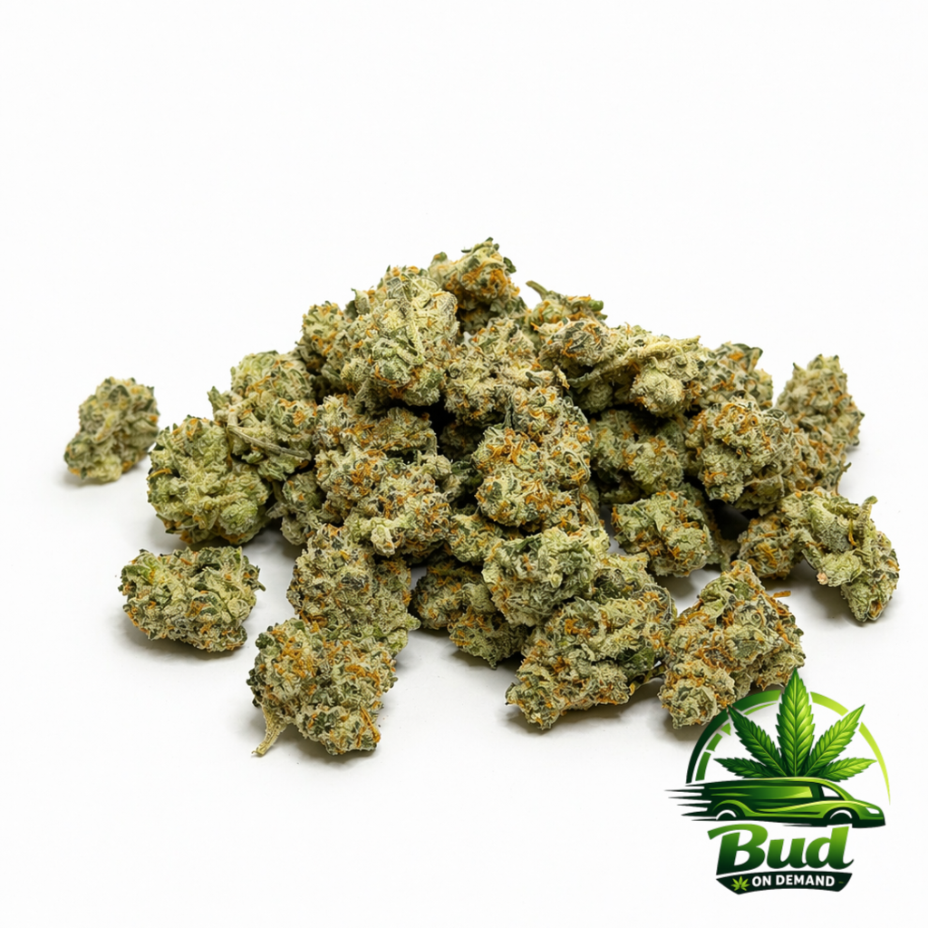 - Appearance: These dense, compact “smalls” are visually striking, featuring bright neon green tones and vibrant orange hairs. Despite their smaller size, they are heavily coated in resin and often display beautiful purple hues when grown in cooler conditions.